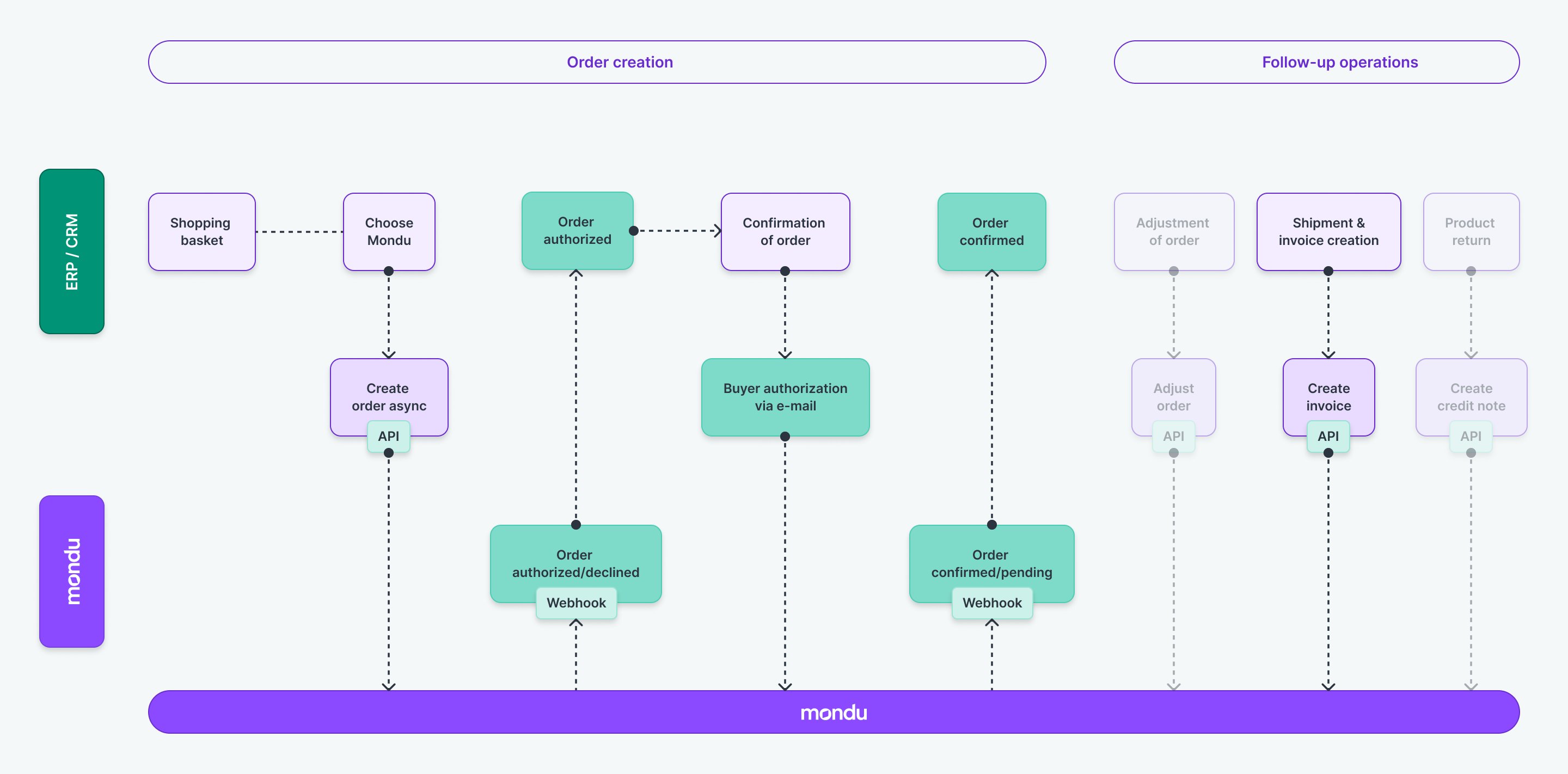 - Once a buyer has been onboarded and approved by Mondu, no additional customer authorization at the individual order level is required.