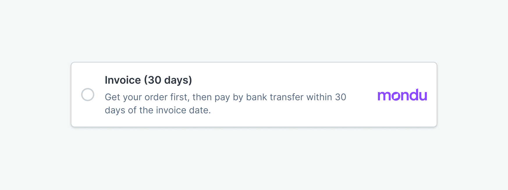 - Set Mondu as the default payment method (preselected) for B2B customers