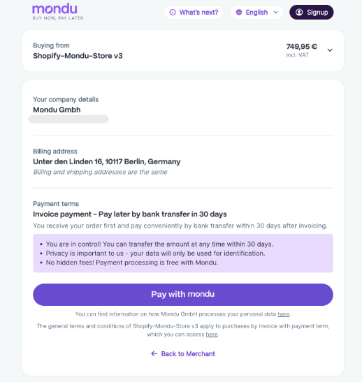 Note: The logo in the screenshot will be shortly updated to Mondu.